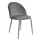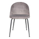De luxe grijze fluwelen bekleding en de strakke zwarte metalen poten van deze stoel zorgen voor een verfijnde en comfortabele eetervaring. Het ontwerp voegt een vleugje moderne elegantie toe aan elke kamer.