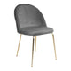 De Geneve Dining Chair heeft een zacht grijs fluwelen zitting en metalen poten in messinglook. Deze stoel biedt comfortabele zitplaatsen en een stijlvolle, eigentijdse uitstraling, geschikt voor diverse eetruimtes. Deze stoel wordt geleverd in een set van 2.