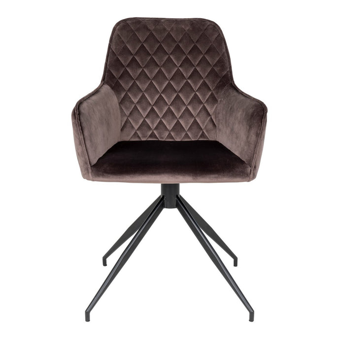 Harbo Eetkamerstoel met Draaiknop - Lichtbruin, Fluweel, Zwarte metalen poten