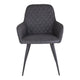 De Harbo Dining Chair heeft een PU-leren zitting in een donkergrijze kleur en zwart metalen poten. Deze stoel biedt comfortabele zitplaatsen en een stijlvolle, veelzijdige uitstraling, geschikt voor diverse eetruimtes. Deze stoel wordt geleverd in een set van 2.