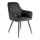 De strakke zwarte afwerking en gewatteerde details van deze stoel maken hem tot een stijlvolle en comfortabele aanvulling op elke eethoek. De PU-lederen zitting is gemakkelijk schoon te maken en te onderhouden, terwijl de metalen poten stevige ondersteuning bieden.
