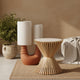 Ontdek de perfecte balans tussen elegantie en stevigheid met onze zandloper marmeren bijzettafel uit de Infinity Collectie. Het verfijnde marmeren blad rust op een stijlvolle houten basis, die zorgt voor een luchtige uitstraling én een solide constructie. Deze bijzettafel is ideaal om je interieur een vleugje luxe en klasse te geven, of je hem nu naast de bank, in de hal of als blikvanger in een hoek plaatst.