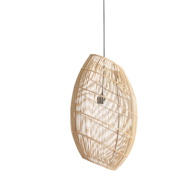 De Luna lampen worden met de hand gemaakt van natuurlijk rotan. Rotan is een klimmende palm of liaan die bomen gebruikt als ondersteuning en tot wel 100 meter lang kan groeien. Het merendeel van de rotansoorten groeit in de tropische bossen van Zuidoost-Azië, waarvan 70% in Indonesië. Het weven van lampen, meubels en manden is een ambacht dat van generatie op generatie wordt doorgegeven. De Luna collectie combineert vintage inspiratie met een modern design en wordt geleverd met een stijlvol stoffen snoer en zwart metalen plafondkapje.